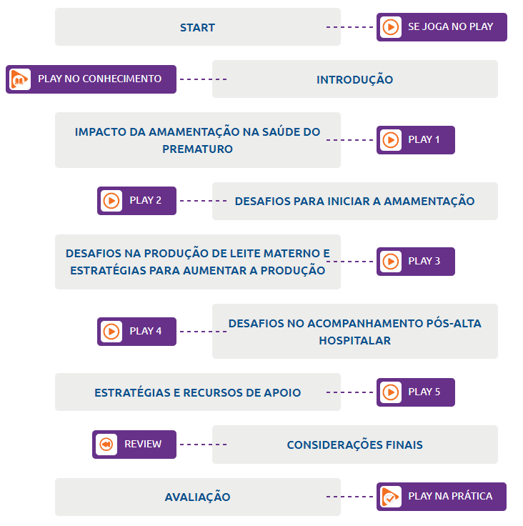 Ao longo da sua trajetória no curso, você poderá dar diversos plays nas nossas unidades de conteúdo, dando o START no Se Joga no Play e prosseguindo até o Review e posteriormente dando um Play na Situação Prática.